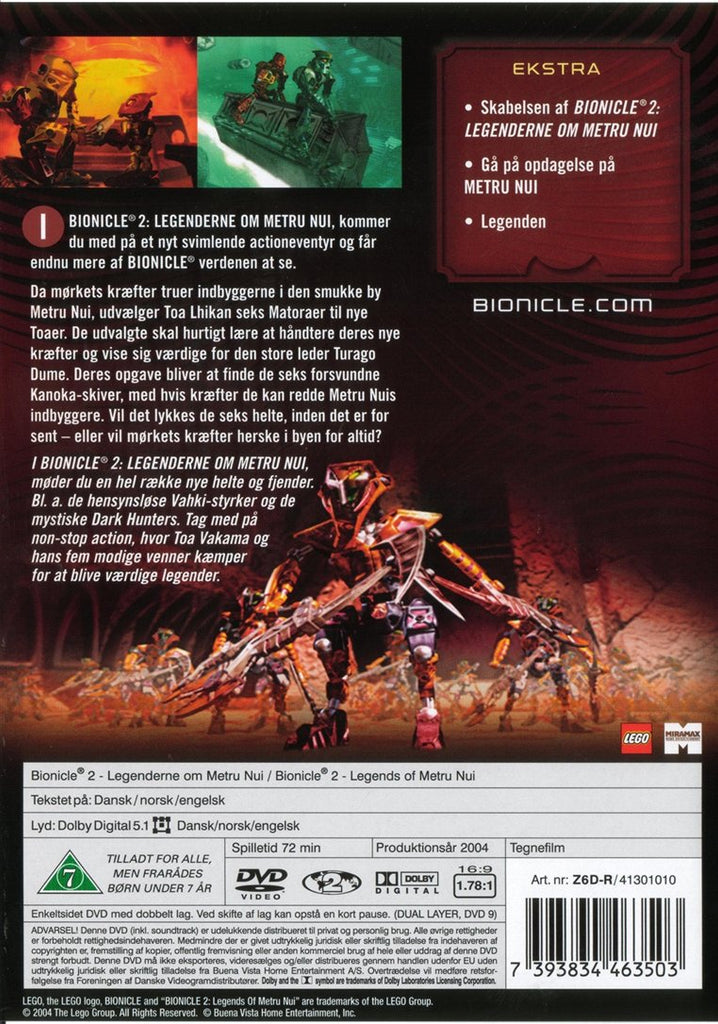 Bionicle 2 - Legenderne om Metru Nui, møder du en hel række nye helte og fjender. Bl. a. de hensynsløse Vahki-styrker og de mystiske Dark Hunters. Tag med på non-stop action, hvor Toa Vakama og hans fem modige venner kæmper for at blive værdige legender.
