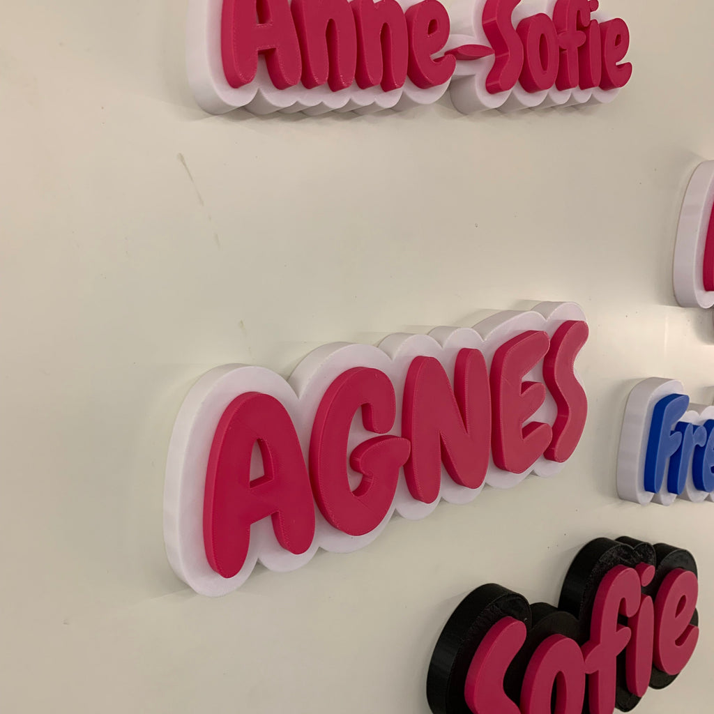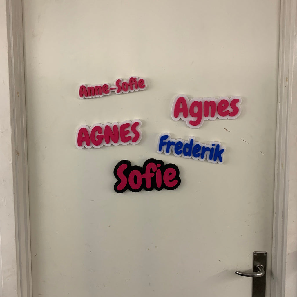 Personligt 3D-printet navneskilt – med farvevalg
