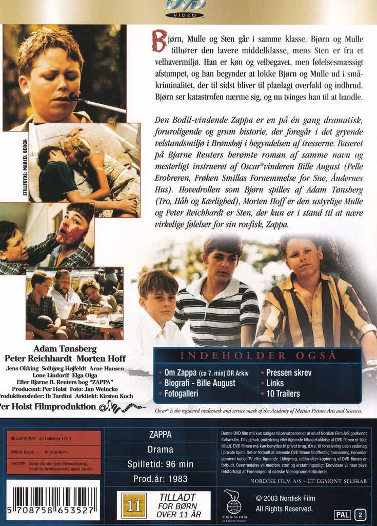 Den Bodil-vindende Zappa er en på én gang dramatisk, foruroligende og grum historie, der foregår i det gryende velstandsmiljø i Brønshøj i begyndelsen af tresserne. Baseret på Bjarne Reuters berømte roman af samme navn og mesterligt instrueret af Osvar-vinderen Bille August (Pelle Erobreren). Hovedrollen som Bjørn spilles af Adam Tønsberg, Morten Hoff er den ustyrlige Mulle, og Peter Reichhardt er Sten, der kun er i stand til at nære virkelige følelser for sin rovfisk, Zappa.